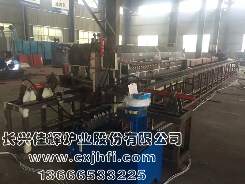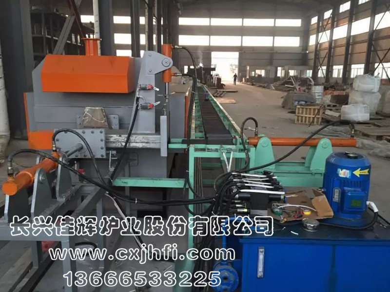 推舟式燒結爐 此設備可根據用戶要求進行定制、定做,服務熱線:13666533225 推舟式燒結爐系連續式生產型工業爐,利用石墨板承載不銹鋼料盒,配合推桿一盒接著一盒地推至加熱區內部,在氣氛保護狀態下進行粉末還原、粉末冶金制品的燒結等熱處理。 用戶可選擇性采購料盒回旋裝置,整體成連貫式生產。 該生產線具有控制先進、方便、節能顯著、維修方便等特點,全線加熱區均采用PID多區控溫。保護氣氛可以選擇采用氮氣或氫氮混合氣體保護。