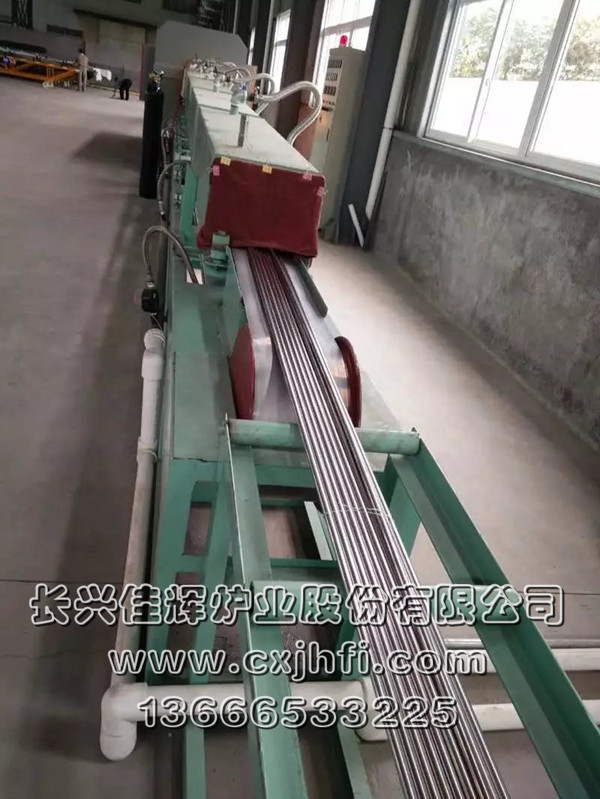 不銹鋼長直管光亮退火爐 此設備可根據用戶要求進行定制、定做,服務熱線:13666533225 RST型不銹鋼長直管光亮退火爐,適用于長度6000mm、7200mm等不銹鋼長直管或毛細管及其他不銹鋼管件、拉伸件、零部件等在可控氣氛(氫氮混合氣體)保護下,進行光亮固溶、去應力退火、消磁等熱處理工藝的專用設備。 金屬及奧氏體產品在彎曲、拉伸、鍛壓、切削、鑄造、焊接等加工 不銹鋼產品退火溫度:950~1080℃,在此溫度下為防止產品與空氣接觸產生氧化(變黑),我公司采用氫氮混合氣體進行保護,保證產品進爐前和出爐后的顏色及光澤度一致。 產品退火處理后,表面光亮無氧化,內應力消除,便于后期的繼續拉伸或成品出貨。本設備取代傳統的退火處理(傳統的高頻退火處理后,產品表面氧化成黑色,需進行后序的酸洗處理,污染環境),本生產線大大提高了生產效率,降低勞動強度及成本,改善工人的勞動環境,達到高效、節能、環保的要求。 該生產線具有控制先進、節能顯著、維修方便等特點,工件輸送采用耐高溫金屬鋼帶或網帶變頻調速,全線加熱區均采用PID自動多區控溫