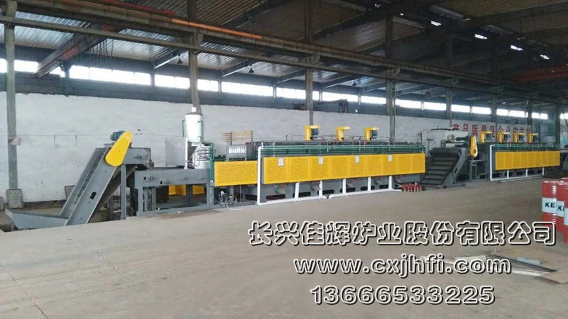 無馬弗托輥式網帶爐熱處理生產線 此設備可根據用戶要求進行定制、定做,服務熱線:13666533225 1.本熱處理生產線采用臺灣爐型、技術、標準制造、檢驗,關鍵部品采用進口產品,國內組裝,整體質量達到進口同等水平。 2.廣泛適用于各種標準件、緊固件、軸承鏈條工具、齒輪及其他小型金屬零件在氣氛保護狀態下進行批量淬火、調質、滲碳等熱處理。 生產線特長: 1.我公司擁有一支經驗豐富的設計隊伍。我公司所銷售的產品可控氣氛及保護氣氛熱處理爐占98%,人機界面計算機控制占81%。能耗均低于GB/T17358規定的工藝電能耗標準。 2.本設備結構先進,采用全套進口技術、標準制造、檢驗,整體質量達到進口同等水平,選用國內外優質材料和元器件而制造的托輥網帶式連續熱處理爐。 3.本設備適用于各種中小型金屬零件的批量熱處理生產,自動化程度高,勞動強度低,生產效率高。 4.設備機械性能穩定,故障率低,操作簡便。 5.現場工作環境清潔、無污染,符合綠色環保產品要求。 6.淬火爐采用直噴式燒嘴輻射管加熱、回火爐采用直噴式燒嘴加熱。 7.淬、回火爐網帶運行采用托輥同步傳動,使網帶運行時承受Z小張力,提高使用壽命;網帶運行連續均勻,與間斷進給的傳動相比消除了網帶返退缺陷和工件經過落料口因時間不同而引起的硬度不均勻的現象。 8.淬火爐前端增設預熱室,節省能量消耗;整機功率配備較低,熱能利用效率高,節能環保是本公司設備的特點。 9.淬火爐輻射管燒嘴為德國LBE公司技術的產品,點火電極、點火控制器、燃氣電磁閥、空氣電磁閥等均為進口技術產品,使用可靠、穩定。 10.生產線具備完整的電氣自動控制、安全聯鎖和報警功能。可編程存儲100多個工件的工藝程序數據,工藝參數、程序可隨時修改、增刪;整套系統按照編制好的程序全自動自動運行,在需要時也可實現手動運行;控制系統顯示屏完整顯示系統運行過程狀況,并能實現運行過程的連續記錄